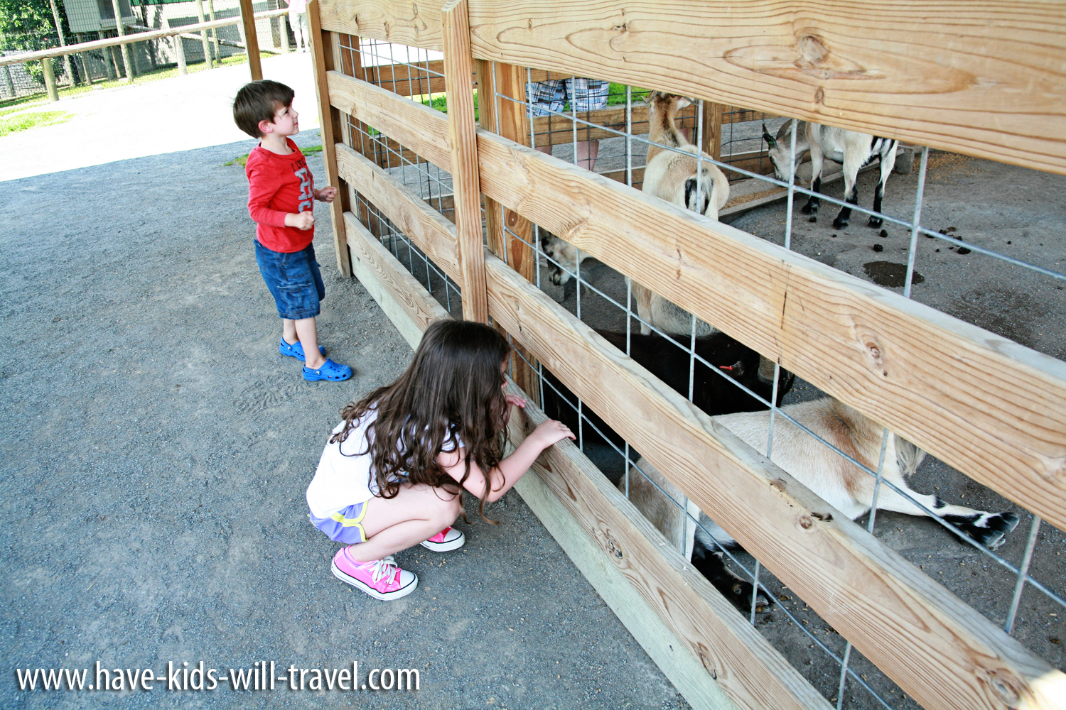 At the petting zoo, the kids loved petting and feeding goats & kids, potbellied pigs & piglets, chickens, baby llamas, and other animal babies.