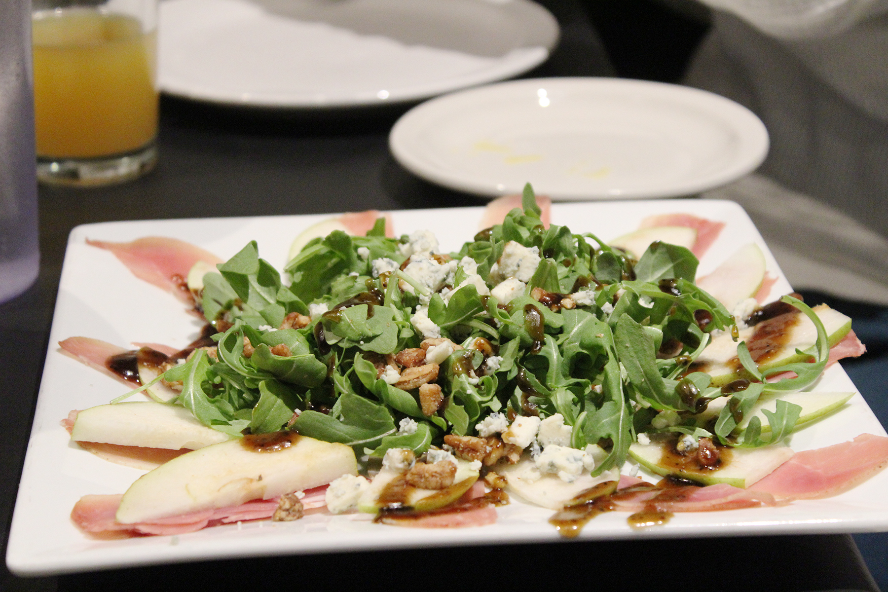 Below: I ordered the Bleu Pear Salad (arugula, prosciutto, fresh pears, bleu cheese, candied pecans, and balsamic drizzle) and it was very good!