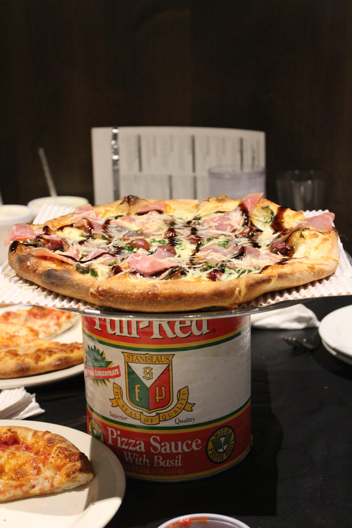Below: I love how each table had large pizza sauce cans on them, and the pizzas were placed on them when they arrived at the table. My mom and sister ordered the Mad Hatter Pizza (one of their award winning pizzas). They said it was different and a little sweet, but very good.