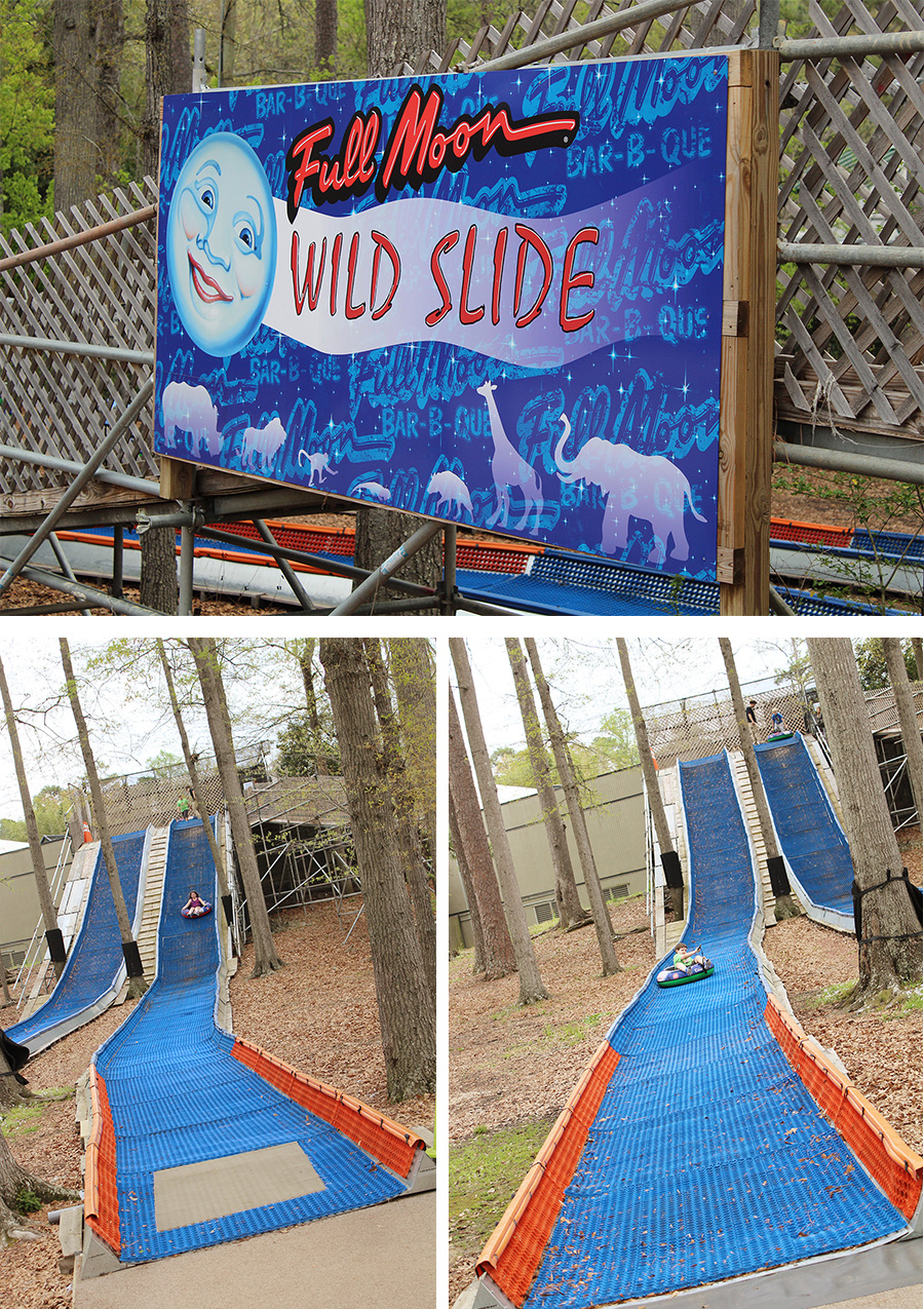 In addition to all of the animals at the Birmingham Zoo, there are a few play areas and a splash pad for the kiddos in the summertime. There are also lots of extra activities that are not included in the price of admission. You can pay for these activities individually or you can purchase a wristband for the kiddos to ride the train, carousel, and slide as many times as they would like. There is also giraffe feeding, lorikeet feedings, camel rides, and a zip line all at an additional cost.