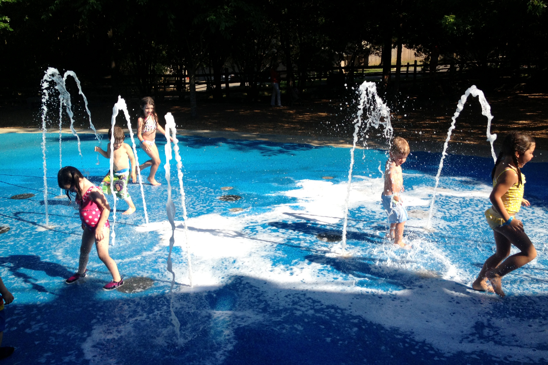 It was too cold to play in the Play Fountain/Splash Pad (we visited in March during Spring Break). I found a few pictures from one of our visits a few summers ago. The splash pad is included with admission. I suggest bringing a swimsuit, change of clothes, and towel. The kiddos won’t be able to resist playing here.