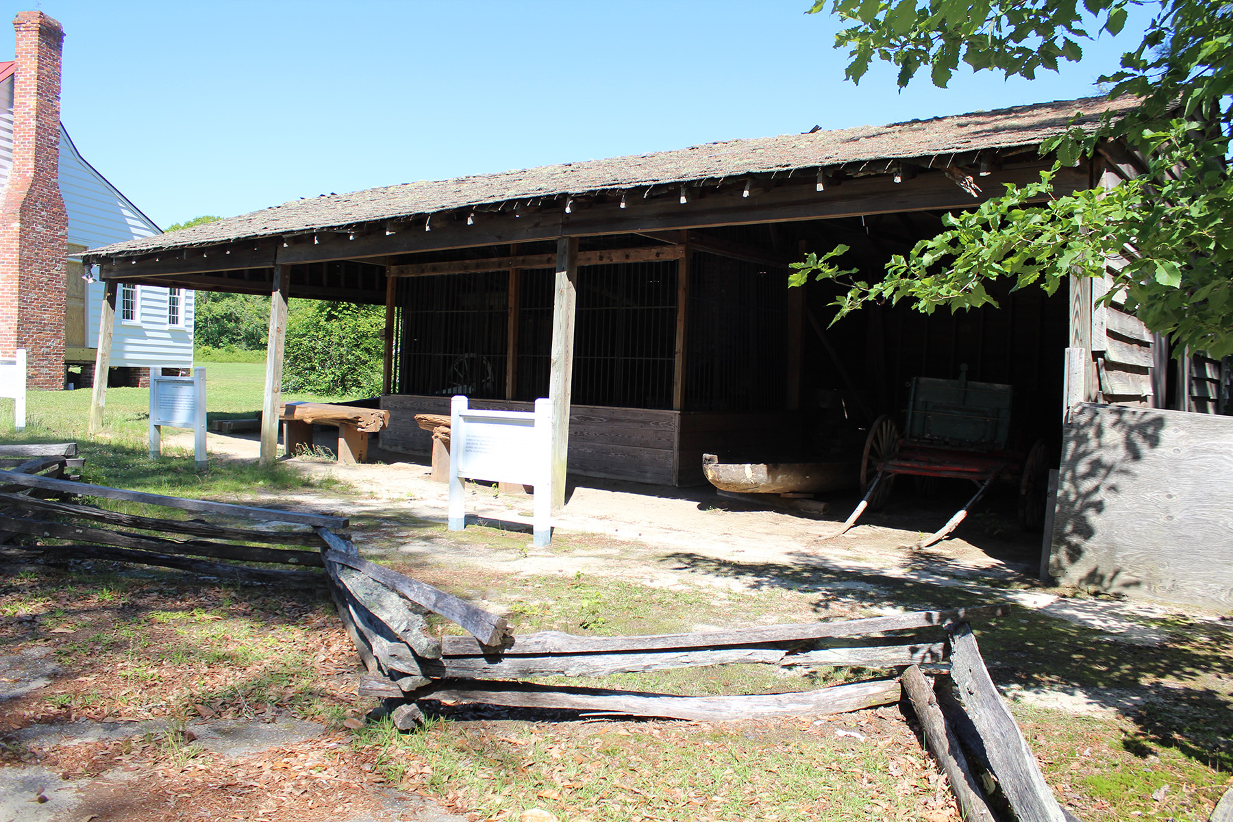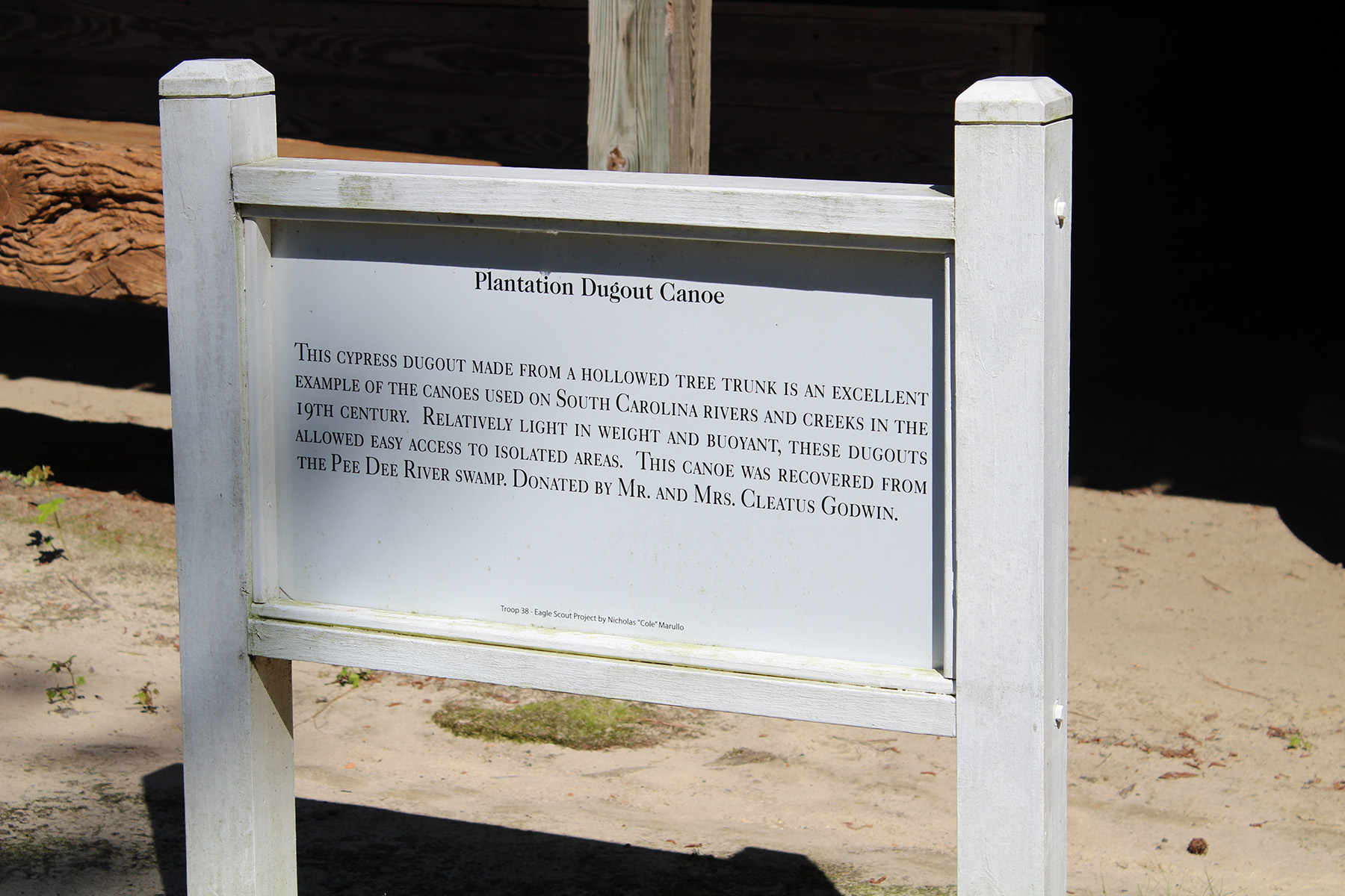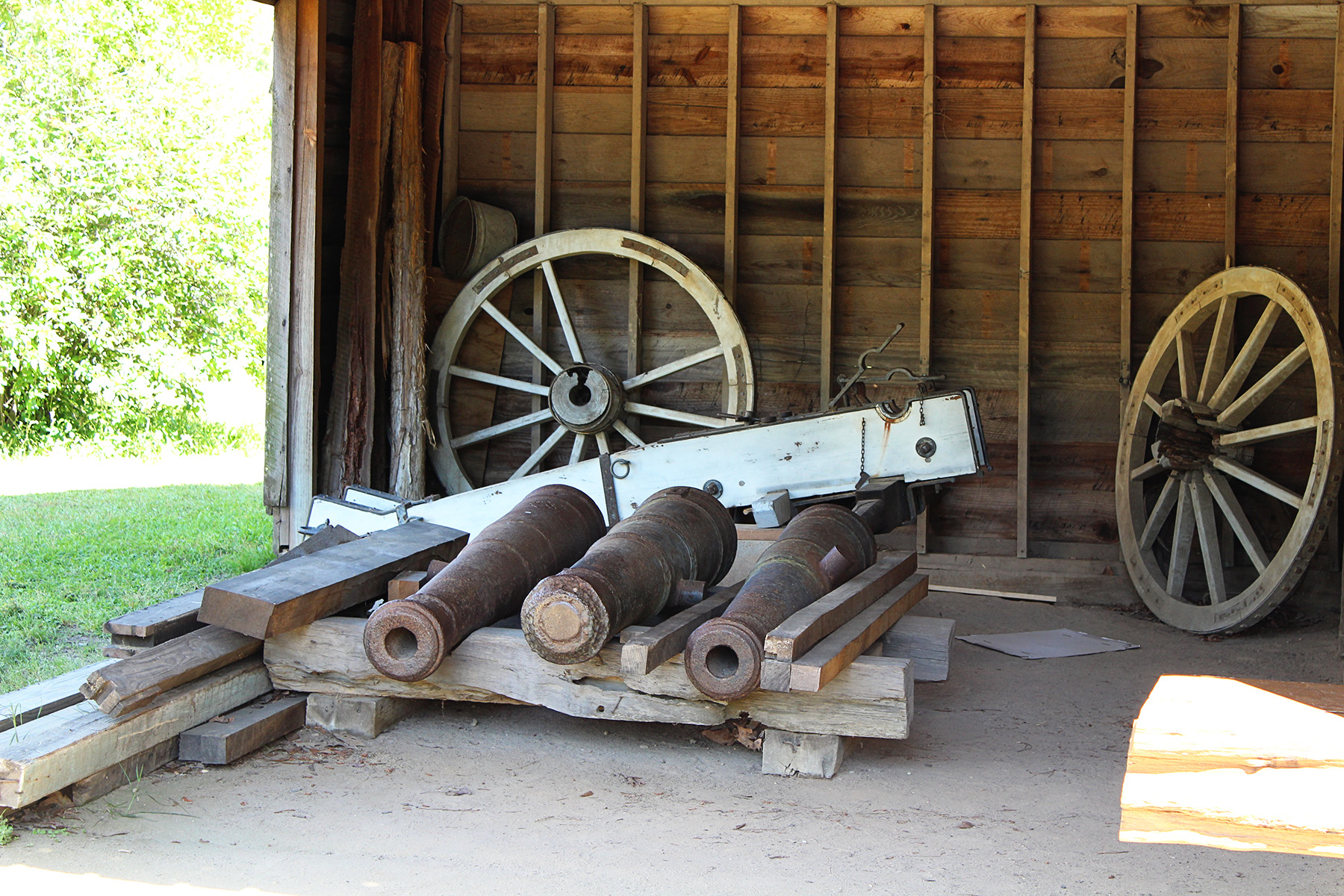 Above: Blacksmith Area, Cannons, Dugout Canoe, Carriage