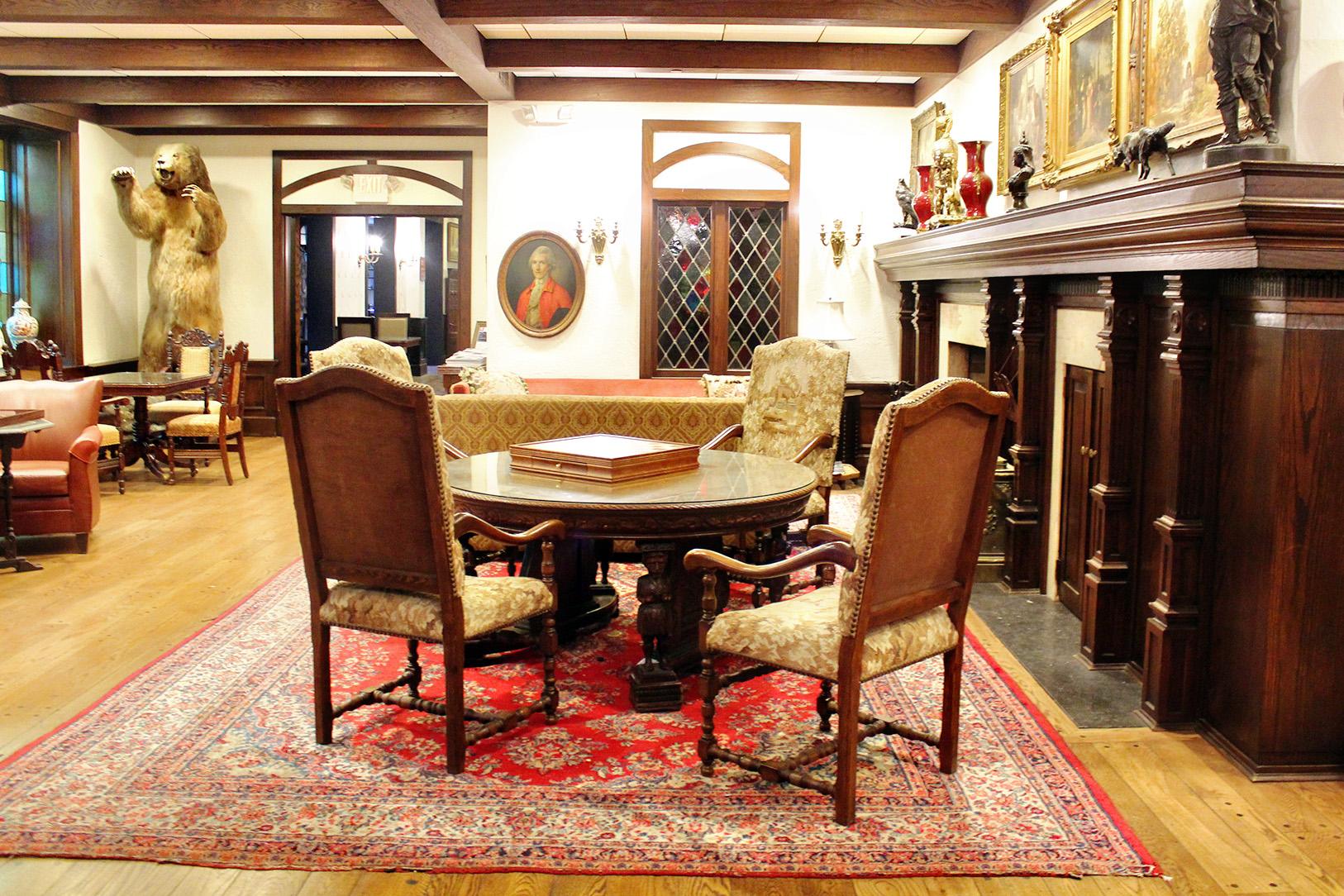 Above: The Queen’s Study is perfect for a cup of coffee or tea and a good book. There are cozy couches nestled next to a wood burning fireplace. This room also has puzzles, games, magazines, and newspapers for the guests to enjoy. I also saw a few people working on their laptops (The Cheshire offers free Wi-fi).