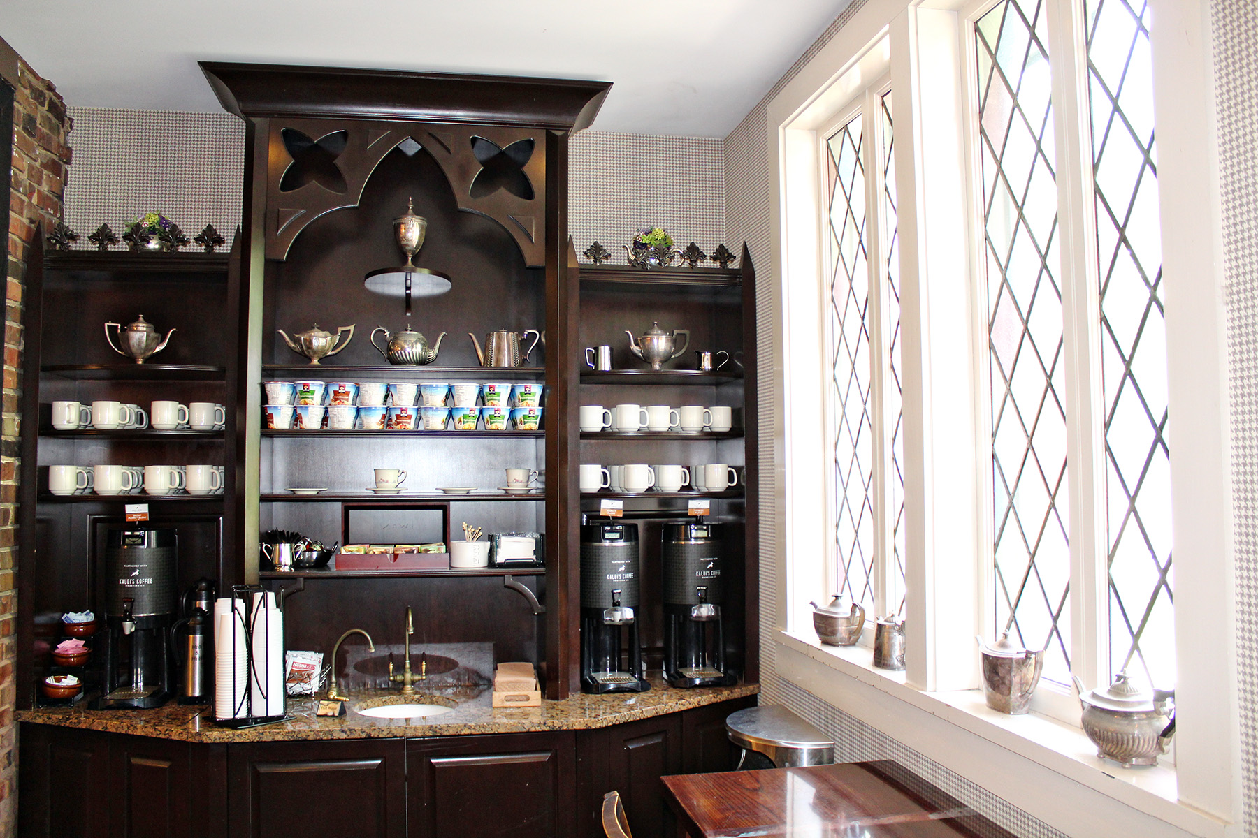 The Cheshire offers a complimentary 24/7 coffee and tea service. I really enjoyed the coffee from Kaldi’s, a Missouri roaster. There is also a nice variety of herbal teas with mini honey jars and other sweeteners available all day.