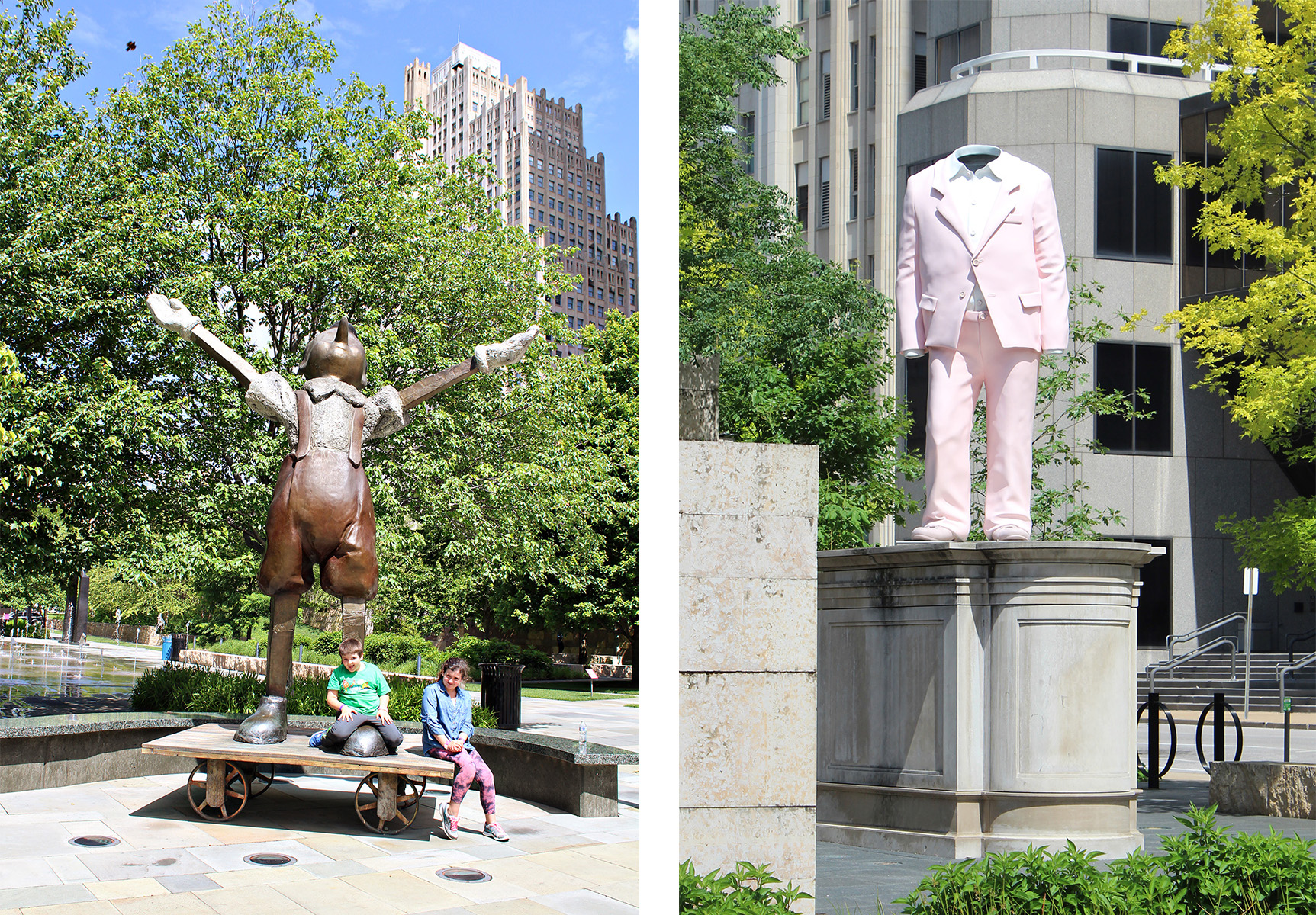 I really love the art sculptures in this area. My favorite sculpture here would be the man in a pink suit without head. It is really great you constantly bringing your young kids to explore new places!