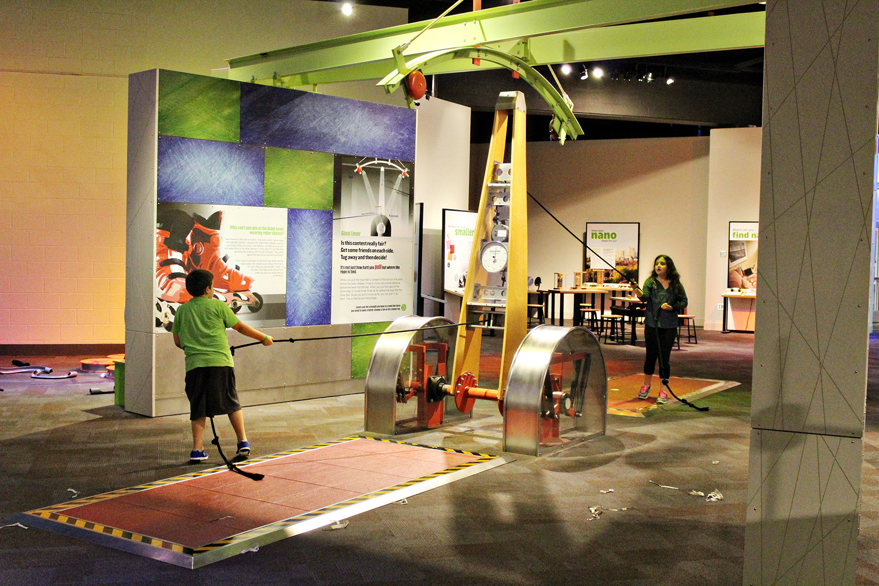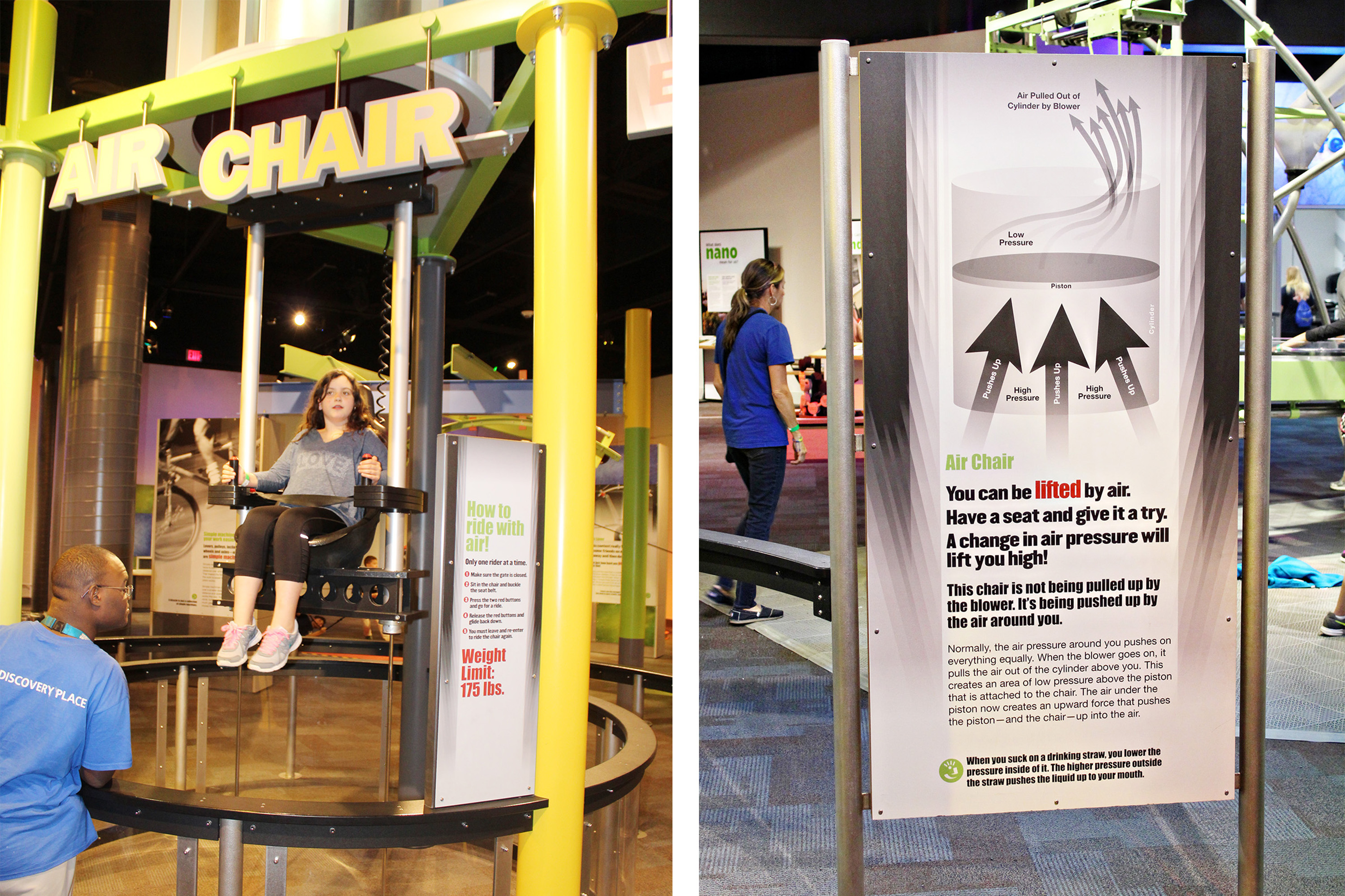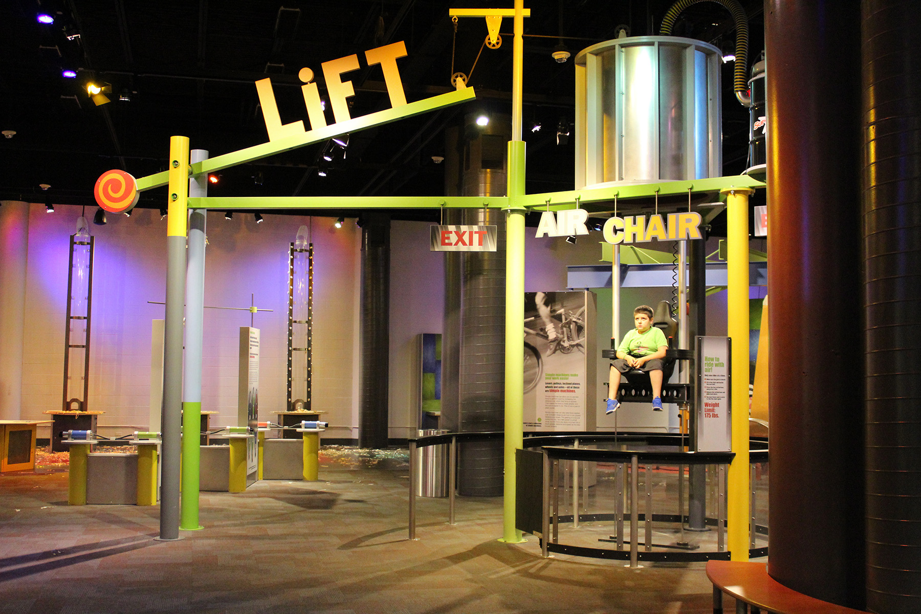 My two kids learned about the physics of lifting, pulley systems, and chemical reactions in this exhibit. The vacuum-powered Air Chair was a big hit with them.