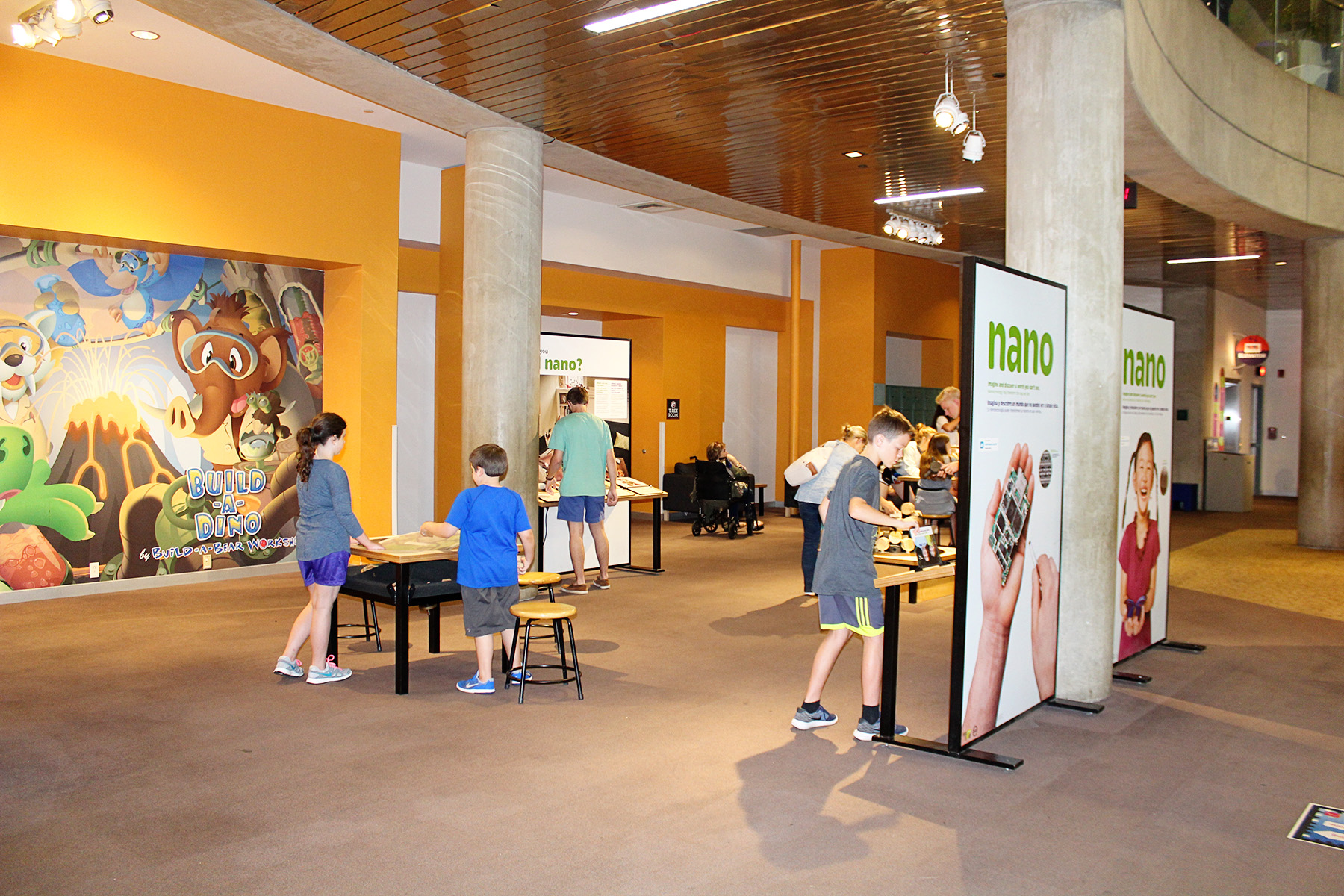 This exhibit shows how a tornado forms and features many earthquake exhibits. It also teaches about paleontology and dinosaurs. There are huge dinosaurs and a dig site to dig for dinosaur bones.