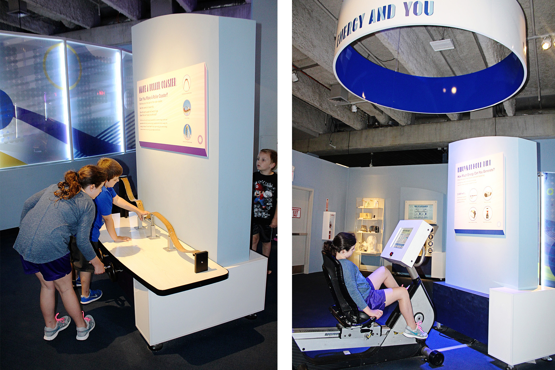 The kids spent quite a bit of time in this exhibit. There are several interactive stations showing how solar, wind, and coal energy can be converted into electricity. The kids were even able to make their own electrical grid, build their own roller coaster ride, and make their own energy.