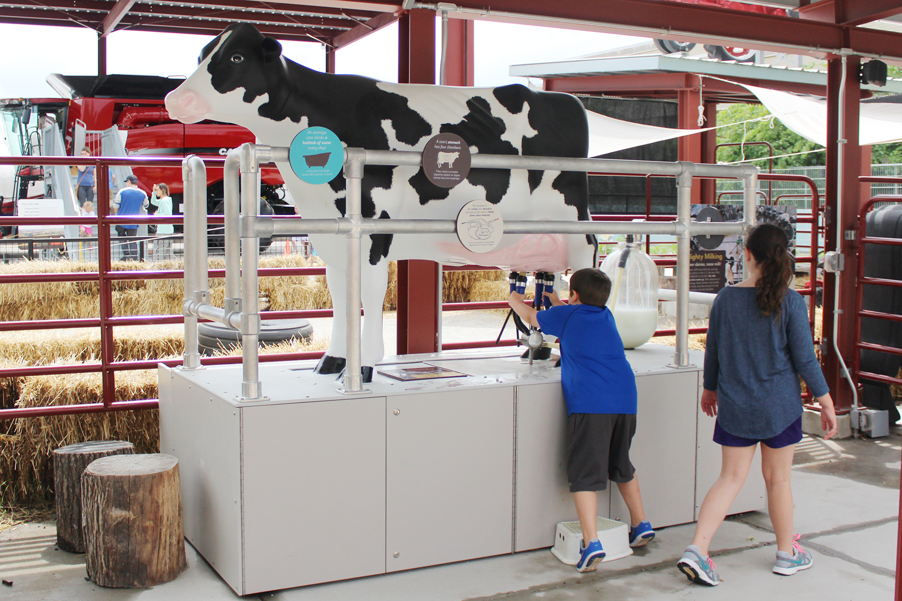 This is a beautiful exhibit, and I was so glad we were able to spend some time here before the thunderstorms started. Some of the exhibit is inside, but most of it is located outside. The kids were able to learn about the science behind food – how it grows and how it gets from the farm to our home. They also learned about: